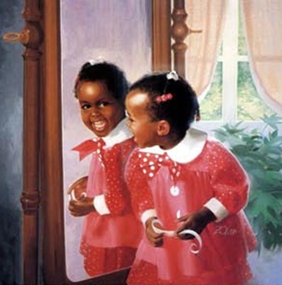 Adorei a imagem, porque é uma menininha feliz tendo o espelho refletindo sua imagem como parâmetro de responsabilidade perante sua vida.